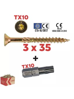 Wkręty ciesielskie 3x35 do drewna łeb stożkowy TORX KMWHT + BIT