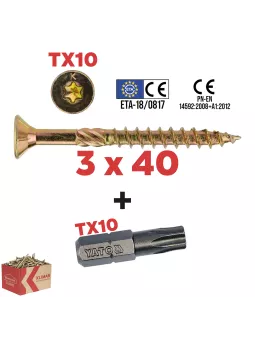 Wkręty ciesielskie 3x40 do drewna łeb stożkowy TORX KMWHT + BIT