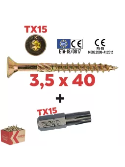 Wkręty ciesielskie 3,5x40 do drewna łeb stożkowy TORX KMWHT + BIT