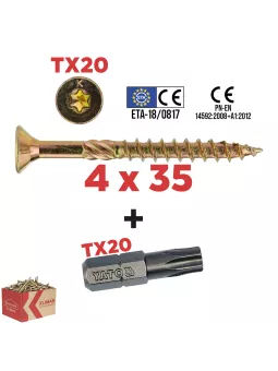 Wkręty ciesielskie 4,0x35 do drewna łeb stożkowy TORX KMWHT + BIT